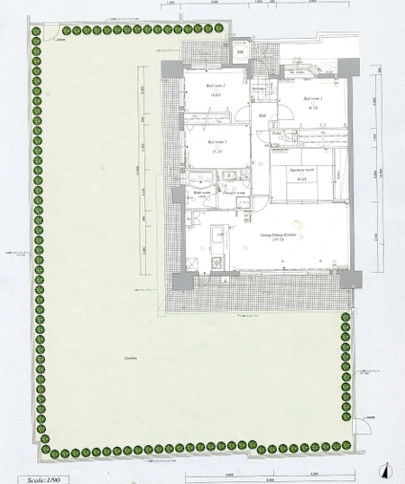 | 備考・その他 | 駐車場1台目:無料 2台目:5,000円/月 サポートコール24:16,500円 エアコンクリーニング代:40,000円 ルームクリーニング代:70,000円 鍵交換代:33,000円 保証料:5,000円/年 更新料:20,000円 賃貸保証:加入要 連帯保証人有りの場合、賃料の60% 連帯保証人をつけない場合、賃料100% ペット相談可 事務所使用不可 角部屋 太陽光発電システム搭載 65坪以上の専用庭 |